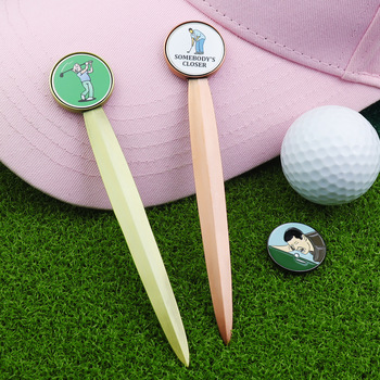 Çinko alaşımlı top çatal lazer kazınmış Logo nokta Golf yeşil tedarik aksesuar